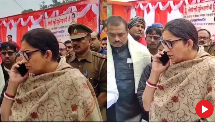 केंद्रीय मंत्री स्मृति ईरानी अपने लोकसभा क्षेत्र अमेठी के दौरे पर हैं। शुक्रवार को जब वह जनता से मिल रहीं थी तो इसी दौरान एक सेवानिवृत्त स्कूल अध्यापक ने उनसे शिकायत की कि रिटायरमेंट के बाद भी उनके बकाया का भुगतान नहीं हुआ है। इस पर स्मृति ईरानी वहीं पर शिक्षा अधिकारी को फोन मिला दिया। घटना का वीडियो सोशल मीडिया पर वायरल हो रहा है।