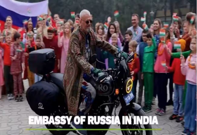 दूतावास की ओर से एक मिनट 29 सेकेंड के वीडियो में बॉलीवुड फिल्म ‘गदर’ के गाने ‘मैं निकला गड्डी लेके…’ पर दूतावास के कर्मचारी डांस और स्टंट करते नजर आ रहे हैं। वीडियो के अंत में रूसी राजदूत डेनिस अलीपोव सभी कर्मचारियों के साथ ‘Happy Republic Day’ के कार्ड पकड़े दिख रहे हैं।