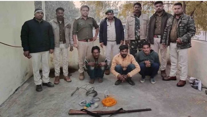 उक्त सूचना को संज्ञान मे लेते हुए गेम परिक्षेत्र मोहली एवं झापन के वन अमले द्वारा मौका स्थल पर घेराबंदी कर आरोपी खड़ी पिता पूरन रैकवार निवासी मुडेरी तहसील दमोह, राजेश पिता दामोदर लोधी निवासी मुहरा तेंदूखेड़ा, जीवन पिता जगदीश लोधी निवासी मुहरा तेंदूखेड़ा को मौके से गिरफ्तार किया गया एक अन्य आरोपी घूमन पिता महेंद्र लोधी निवासी जमुनिया अंधेरे का फायदा उठाकर मौके से फरार हो गया जिसकी तलाश जारी है।
