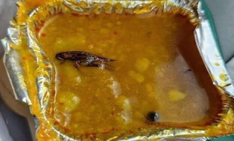 जानकारी के अनुसार, मंगलवार को एक दंपती भोपाल से आगरा कैंट के लिए वंदेभारत में सवार थे। ट्रेन झांसी पहुंची तो यहां बेस किचन से भोजन ट्रेन में चढ़ाया गया। इसी ट्रेन के सी-2 कोच में सवार राजेंद्र ने जब अरहर की दाल का डिस्पोजेबल कटोरा खोला तो उसमें मरा हुआ कॉकरोच निकला।