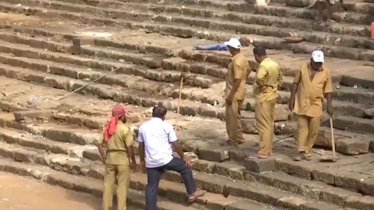 दक्षिण मुंबई में राजभवन के निकट स्थित पुरातात्विक महत्व के बाणगंगा तालाब के सफाई एवं सौंदर्यीकरण अभियान के दौरान मंगलवार को ठेकेदार द्वारा तालाब की सीढ़ियों पर बुलडोजर उतार दिया गया। इससे पत्थर से बनी सीढ़ियां टूट गईं।