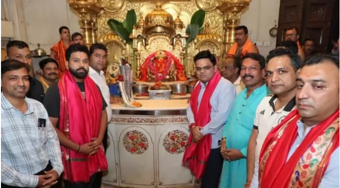अब भारतीय कप्तान रोहित शर्मा और बीसीसीआई सचिव जय शाह टी20 विश्व कप ट्रॉफी के साथ सिद्धिविनायक मंदिर पहुंचे। इस दौरान दोनों ने विशेष पूजा-अर्चना की। रोहित शर्मा और जय शाह की तस्वीरें सोशल मीडिया पर तेजी से वायरल हो रही हैं।