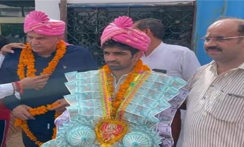 बहादुरगढ़ पहुंचने पर अमन सहरावत का जोरदार स्वागत