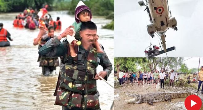 महिला क्रिकेटर राधा यादव और उनका परिवार वडोदरा में बाढ़ में फंस गया था। एनडीआरएफ ने बुधवार को इन सभी को सुरक्षित बचाया। राधा ने इसके लिए एनडीआरएफ का धन्यवाद जताया। वहीं वायुसेना ने बृहस्पतिवार को देवभूमि द्वारका में बाढ़ में फंसे चार लोगों को हेलिकॉप्टर के जरिये सुरिक्षत निकाला। राज्य आपातकालीन संचालन केंद्र (एसईओसी) ने बताया गया कि बाढ़ प्रभावित क्षेत्रों से 18,000 से अधिक लोगों को स्थानांतरित किया गया है और करीब 1,200 लोगों को बचाया गया है।