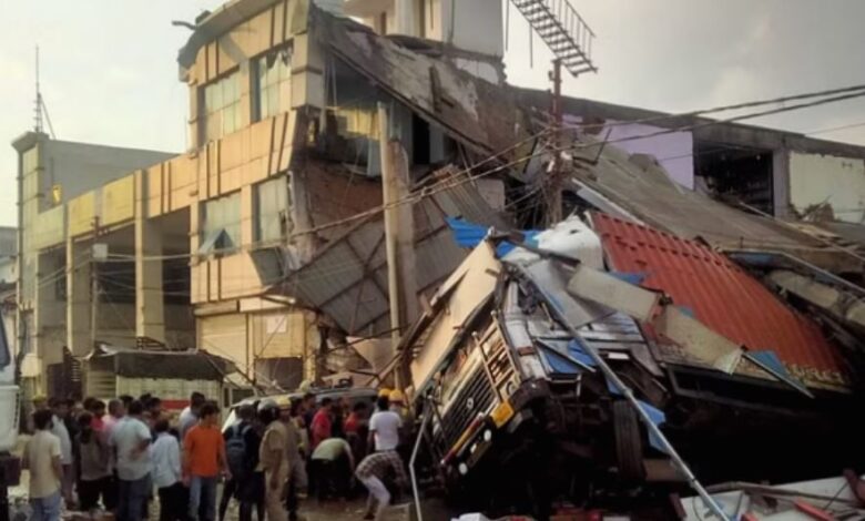 ट्रांसपोर्टनगर में शनिवार शाम बारिश के दौरान शहीद पथ किनारे स्थित एक इमारत (हरमिलाप टावर) भरभराकर जमींदोज हो गया। हादसे में एक कारोबारी समेत आठ की मौत हो गई। मलबे में दबे 20 से अधिक लोगों को निकालकर अस्पतालों में भर्ती कराया गया है। इनका इलाज जारी है। मलबे में अभी कई और लोगों के दबे होने की आशंका है। एनडीआरएफ, एसडीआरएफ, दमकल और पुलिस की टीमें राहत-बचाव कार्य में जुटी हैं।