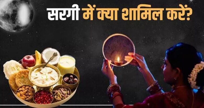 करवा चौथ की सरगी में फलों को शामिल करना चाहिए। जैसे- सेब, केला, अंगूर, पपीता आदि। इसके अलावा सूखे मेवे, हलवा, मिठाई, दूध और दही समेत आदि चीजों को शामिल किया जा सकता है।
