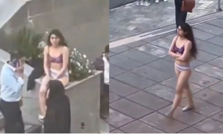 सोशल मीडिया पर एक वीडियो शेयर किया जा रहा है, जिसमें एक लड़की सिर्फ अंडरवियर में यानी अर्धनग्न अवस्था में सार्वजनिक जगह पर घूम रही है।