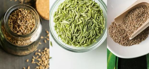 जीरा, सौंफ और अजवाइन तीनों ही पाचन तंत्र के लिए बेहद फायदेमंद हैं। जीरा डाइजेस्टिव एंजाइम्स को एक्टिव करता है और पेट की गैस, एसिडिटी और अपच की समस्या को दूर करता है। सौंफ में मौजूद एंटी-इंफ्लेमेटरी गुण पेट की सूजन को कम करते हैं और पाचन क्रिया को दुरुस्त रखते हैं।