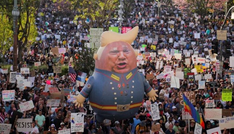डोनाल्ड ट्रंप की नीतियों के खिलाफ अमेरिका में बड़े पैमाने पर प्रदर्शनों का दौर शुरू हो चुका है। 2017 में महिला मार्च और 2020 में ब्लैक लाइव्स मैटर के बाद ट्रंप को इतने बड़े विरोध प्रदर्शन का सामना करना पड़ रहा है। अमेरिकी नागरिक ट्रंप के देश चलाने के तरीके से खफा हैं। लोगों की बड़ी भीड़ ने शनिवार को अमेरिका के 50 राज्यों में 1200 से अधिक स्थानों पर शांतिपूर्ण तरीके से अपना विरोध दर्ज कराया।