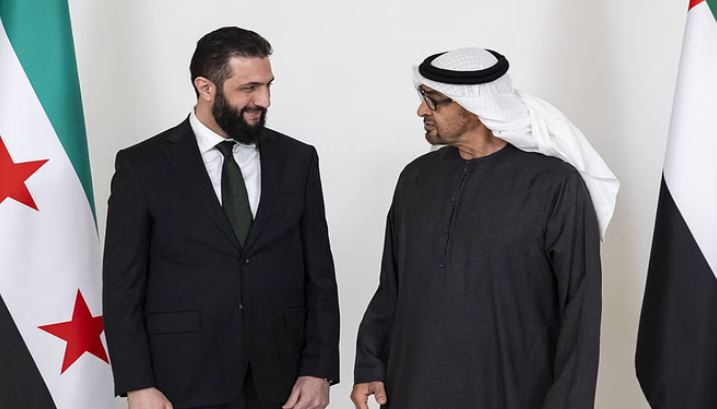 सरकारी अमीरात समाचार एजेंसी डब्ल्यूएएम ने बताया कि यूएई के राष्ट्रपति शेख मोहम्मद बिन जायद अल-नाहयान ने अबू धाबी में अल-शरा से मुलाकात की और उन्हें भविष्य में सीरिया का सफल नेतृत्व करने और सीरियाई जनता की विकास, सुरक्षा और स्थिरता की उम्मीदों को पूरा करने के लिए शुभकामनाएं दीं। बयान में कहा गया कि दोनों नेताओं ने आपसी हित के कई मुद्दों पर चर्चा की और क्षेत्रीय व अंतरराष्ट्रीय घटनाक्रमों पर अपने विचार साझा किए।