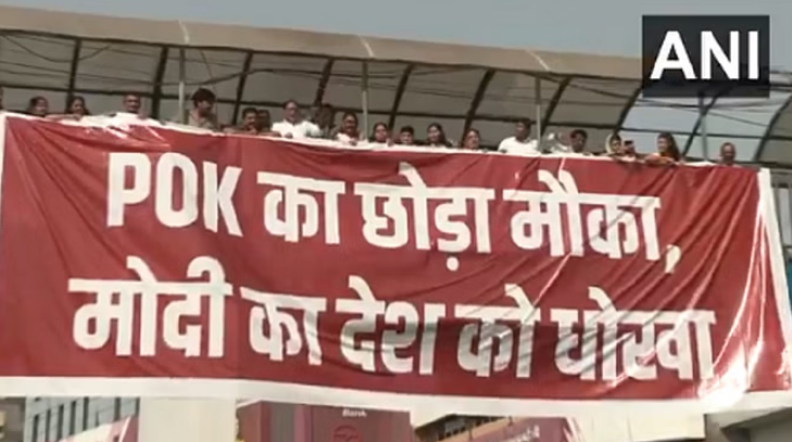 दिल्ली में आप कार्यकर्ताओं ने ओखला में मोदी फ्लोर मिल्स के पास फुटओवर ब्रिज पर प्रदर्शन किया। बैनर लेकर आप कार्यकर्ताओं ने जमकर नारेबाजी की। बैनर पर लिखा है, “पीओके का छोड़ा मौका, मोदी का देश का धोखा।”