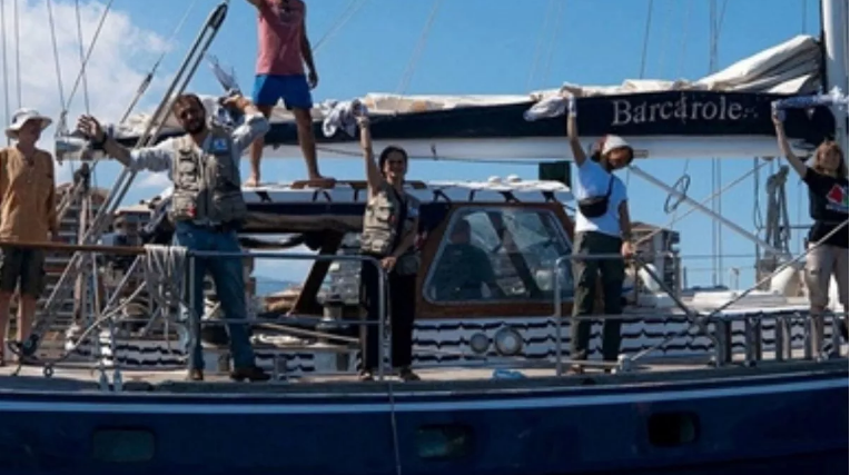 रीमा हसन, यूरोपीय संसद की सदस्य (एमईपी), जो ब्रिटिश ध्वज वाली नौका मैडलीन पर सवार कार्यकर्ताओं में से एक हैं,उन्होंने एक फोटो पोस्ट की जिसमें लाइफ जैकेट पहने लोग हाथ ऊपर करके बैठे हुए दिखाई दे रहे हैं।