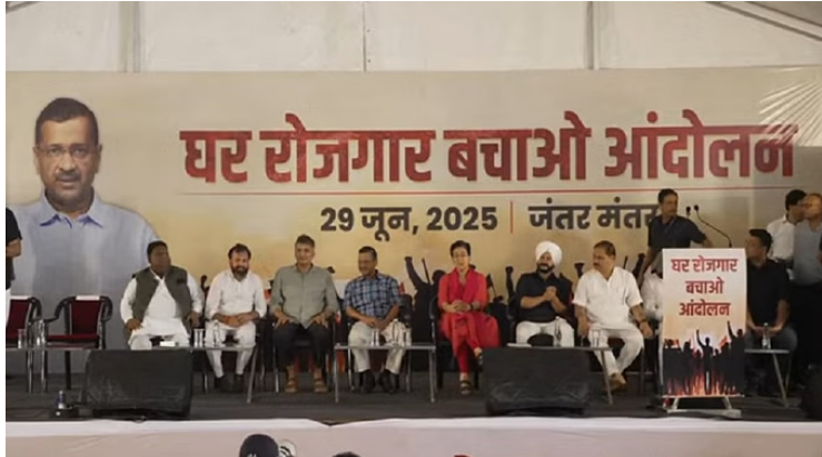 दिल्ली में झुग्गियों के तोड़े जाने के विरोध में आम आदमी पार्टी आज जंतर मंतर पर विरोध प्रदर्शन कर रही है। इस आयोजन में आम आदमी पार्टी के राष्ट्रीय संयोजक अरविंद केजरीवाल, वरिष्ठ नेता व पंजाब प्रभारी मनीष सिसोदिया, दिल्ली प्रदेश अध्यक्ष सौरभ भारद्वाज समेत तमाम बड़े नेता शामिल हैं।