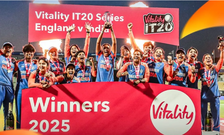 यह महिला क्रिकेट इतिहास में इंग्लैंड के खिलाफ भारत की पहली टी20I सीरीज जीत है। इससे पहले भारत ने इंग्लैंड के खिलाफ 6 द्विपक्षीय टी20I सीरीज में हार का सामना किया था। भारत ने 2006 में डर्बी में इंग्लैंड के खिलाफ एकमात्र T20 मैच जीता था, जो दोनों टीमों के बीच इस फॉर्मेट का पहला मैच था।