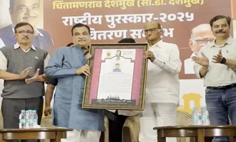 केंद्रीय मंत्री नितिन गडकरी को मंगलवार को जनसेवा के लिए चिंतामणराव देशमुख राष्ट्रीय पुरस्कार से सम्मानित किया गया। राकांपा (शरदचंद्र पवार) अध्यक्ष शरद पवार ने पुणे स्थित गैर सरकारी संगठन (एनजीओ) सरहद द्वारा स्थापित यह पुरस्कार गडकरी को प्रदान किया।