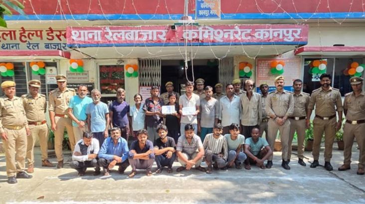 कानपुर में रेलबाजार पुलिस ने गुरुवार रात एक बड़ी कार्रवाई करते हुए मीरपुर स्थित पानी की टंकी के पास एक बंद पड़े मकान में छापा मारा। इस दौरान पुलिस ने जुआ खेलते हुए 18 जुआरियों को रंगे हाथों गिरफ्तार किया। वहीं, पुलिस के पहुंचने पर छह जुआरी छत फांदकर भाग गए, जिनमें मुख्य आरोपी भी शामिल हैं। स्वतंत्रता दिवस के मौके पर गोलू यादव और कुनाल यादव नाम के दो सगे भाई बड़े पैमाने पर जुआ खिलवा रहे थे।