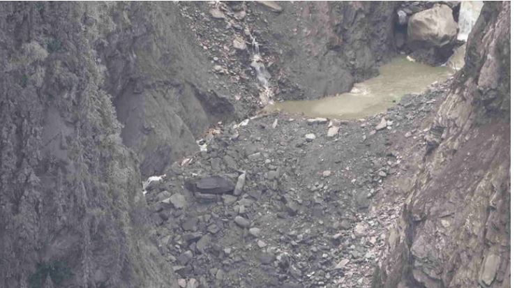 भूस्खलन वाले स्थान पर दो छोटी झीलें साफ नजर आईं