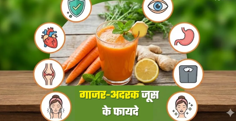 गाजर और अदरक का जूस सेहत के लिए एक ऐसा कॉम्बिनेशन है, जो शरीर को अंदर से ताकतवर और बाहर से ग्लोइंग बनाता है। यह जूस इम्युनिटी को बढ़ाता है, पाचन को सुधारता है, आंखों की रोशनी बढ़ाता करता है, वेट लॉस करने में मदद करता है और स्किन को नेचुरल ग्लो देता है। साथ ही, यह सूजन और जोड़ों के दर्द से राहत दिलाता है और हार्ट को हेल्दी रखने में भी कारगर है।
