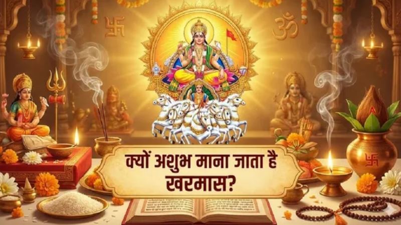 इस सूर्य देव अपने सात घोड़ों के रथ पर सवार होकर ब्रह्मांड की परिक्रमा करते हैं। परिक्रमा के दौरान जब उनके घोड़े थककर रुक जाते हैं, तब सूर्य देव खर यानी (गधों) के साथ अपनी यात्रा शुरू करते हैं। गधों की गति धीमी होती है, इसलिए सूर्य का तेज कम हो जाता है। इसके अलावा ज्योतिषीय दृष्टि से, गुरु की राशि में सूर्य के होने से गुरु की शुभता कम हो जाती है, जिससे मांगलिक काम रोक दिए जाते हैं, क्योंकि किसी भी मांगलिक काम के लिए गुरु का शुभ स्थिति में होना जरूरी होता है।